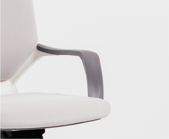 Materials: Durable fabric upholstery over polyurethane foam; white or black molded polypropylene shell; grey polypropylene armframe.