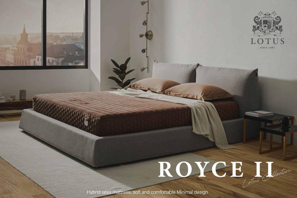 Float into the abyss of relaxation with the Royce II mattress, a hybrid springless mattress that delivers a soft, natural feel through the Ergo massage Foam Base, a quality foam material that uses the innovative Zoned Comfort, adjusting the smooth surface to be curled-like durian thorns. Convoluted makes it possible to create Balance and support the weight well. Combined with Microlatex, natural rubber through a special compression process (Micro compression) from Belgium. Reinforced with Stress-Free Foam, a soft, firm foam blended with Conjugate Hollo Fill II Fiber 380 gsm with a 7-cell ventilation perforation structure to adjust pressure distribution to help the circulatory system in the body work more smoothly. No beriberi